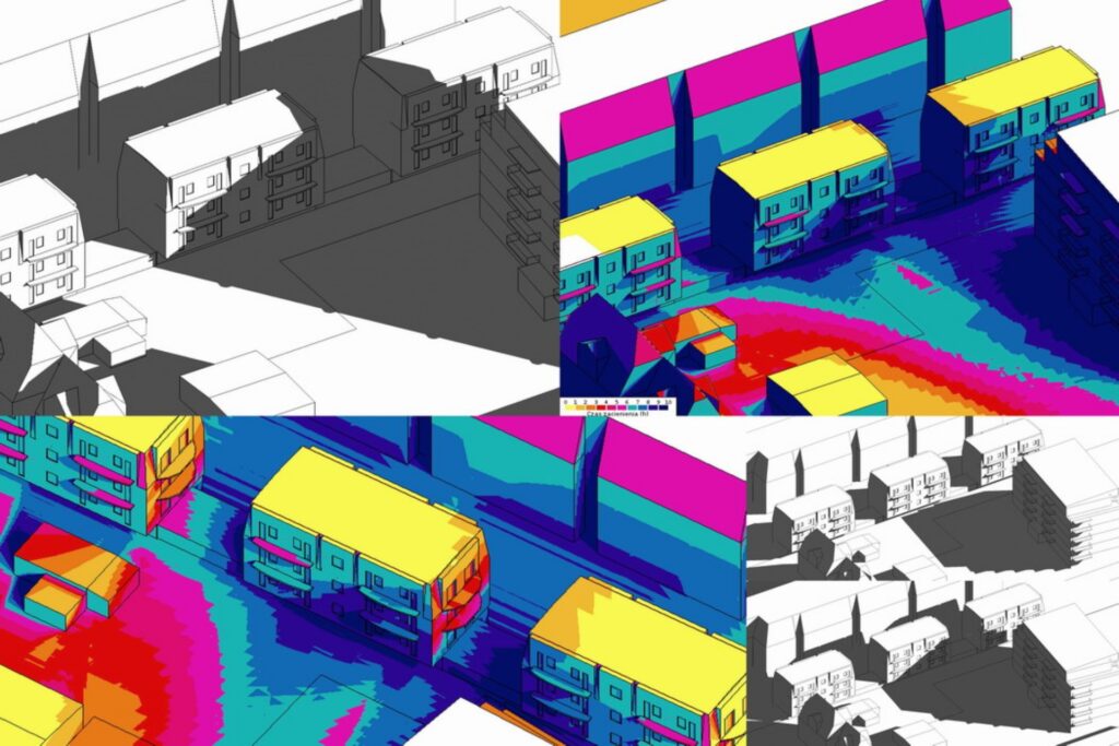 W ubiegłym miesiącu wykonaliśmy analizę nasłonecznienia mieszkań w istniejącym budynku wielorodzinnym przy ul Polanka w związku z planowaną w sąsiedztwie inwestycją deweloperską. Analizie poddano narażoną na nadmierne zacienianie elewacje zachodnią istniejącego  budynku. Wstępne sprawdzenie czasu nasłonecznienia wykonano przez wykreślenie linijki słońca, natomiast ostateczne analizy przy pomocy modelu 3d zabudowy  i  wirtualnej symulacji cienia. W tym celu wykorzystaliśmy   licencjonowane oprogramowania zliczające łączny czas nasłonecznienia/zacieniania wszystkich płaszczyzn na elewacji. Ponadto wykonaliśmy szereg wizualizacji pokazujących wędrówkę cienia od nowego budynku po elewacji budynku istniejącego.
