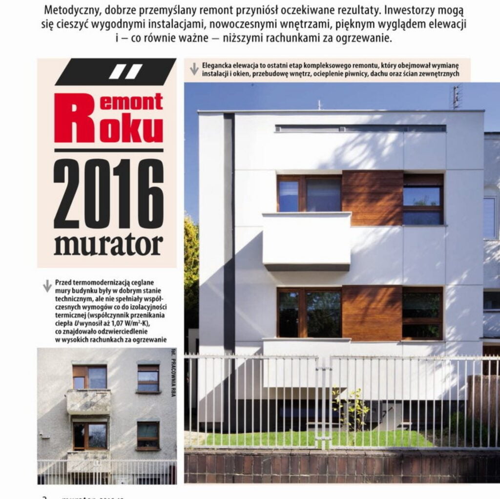 W grudniowym numerze MURATORa znajdziecie artykuł poświęcony zaprojektowanej przez nas termomodernizacji budynku na poznańskim Grunwaldzie. Projekt uzyskał wyróżnienie w kategorii projektowej i nominację do nagrody realizacyjnej „Remont roku 2016”.